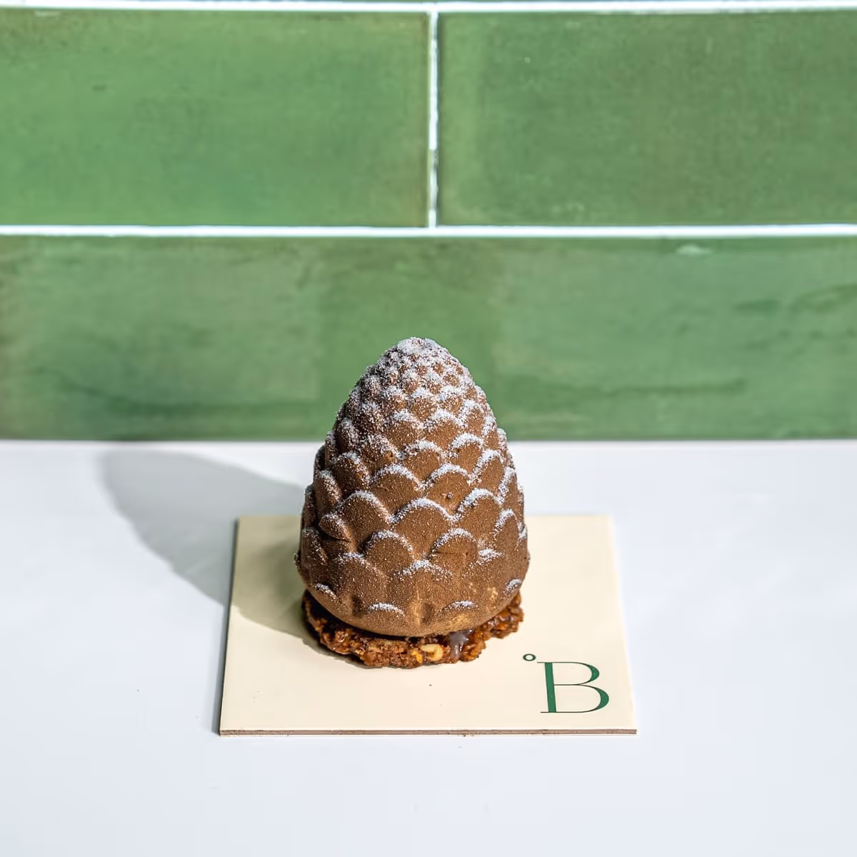 Our signature tiramisu tin featuring a crisp chocolate disc, rich coffee-soaked ladyfingers, and velvety mascarpone mousse.
